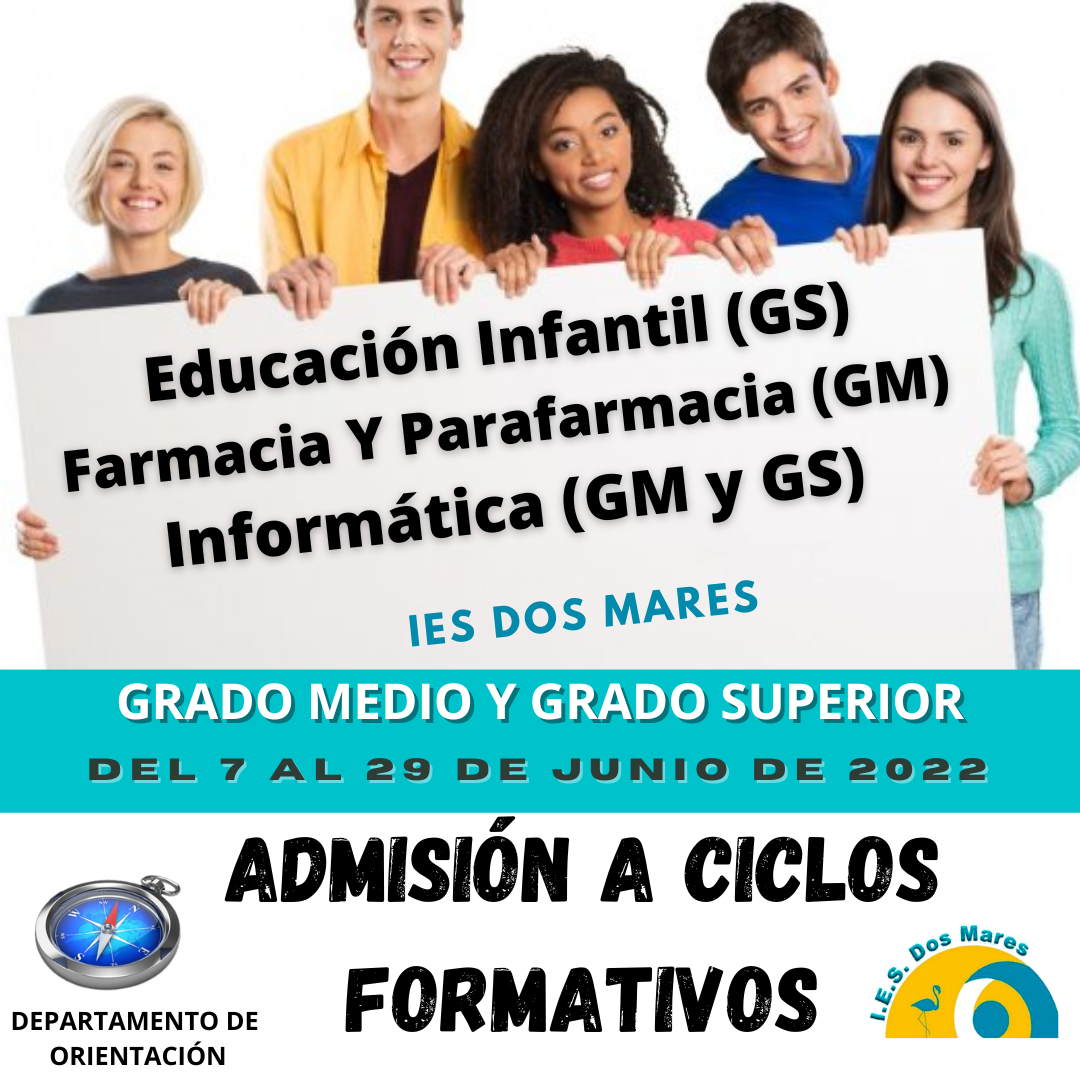 Para acceder a toda la información necesaria (calendario del proceso de admisión, oferta de ciclos formativos, criterios de prioridad para el acceso, normativa que regula el acceso, etc.) pueden consultar la página de la CARM entrando en el siguiente enlace.