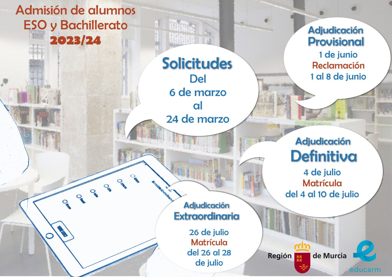ADMISIÓN ALUMNOS DE ESO Y BACHILLERATO CURSO 23-24 - Instituto IES Dos Mares - Trabajamos para ser el mejor instituto en San Pedro del Pinatar