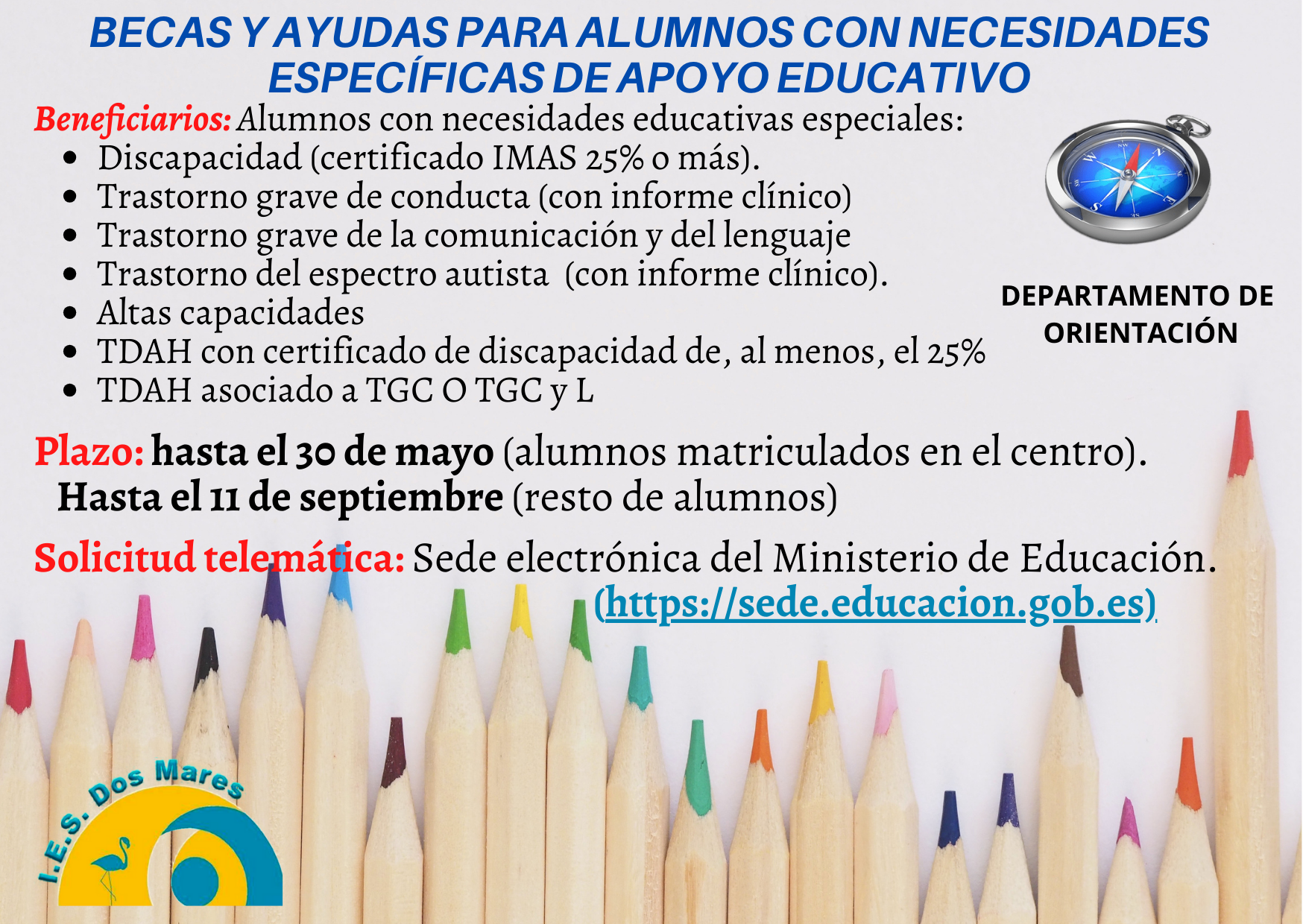 Becas y ayudas para alumnos con necesidad específica de apoyo educativo - Instituto IES Dos Mares - Trabajamos para ser el mejor instituto en San Pedro del Pinatar