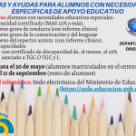 Recordamos a las familias que pueden solicitar las becas y ayudas del Ministerio de Educación para alumnos con necesidad específica de apoyo educativo hasta el 11 de septiembre. Tengan en cuenta que este tipo de beca es incompatible que la beca general de estudios postobligatorios. TIPOS DE AYUDAS QUE SE PUEDEN SOLICITAR: Las solicitudes tanto… Lee más: Becas y ayudas para alumnos con necesidad específica de apoyo educativo - AMPLIACIÓN DEL PLAZO PARA SOLICITAR BECAS DE ESTUDIOS POSTOBLIGATORIOS