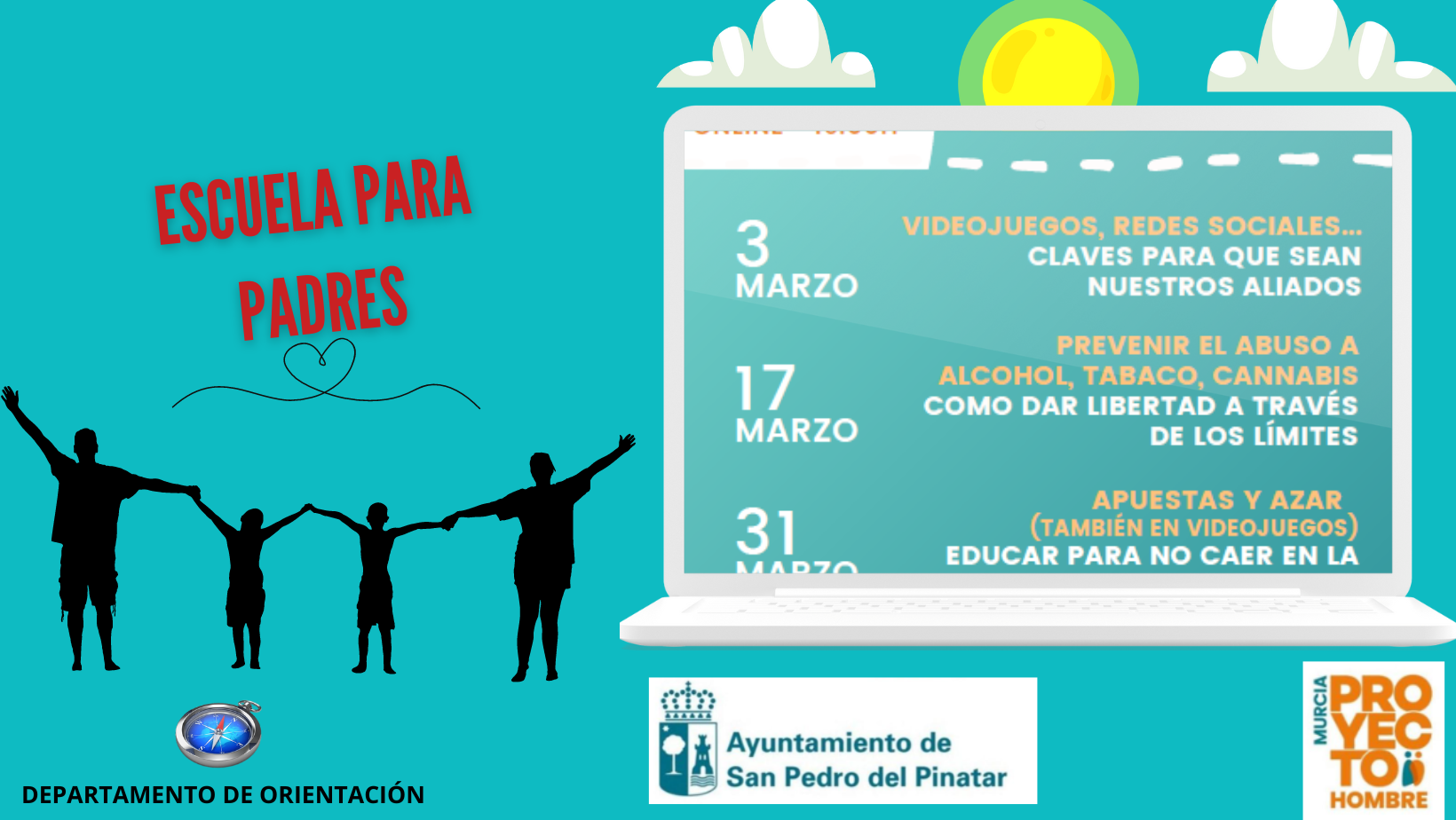 Queridas familias les informamos de unas charlas gratuitas que se van a desarrollar próximamente para padres que están subvencionadas por la Concejalía de Bienestar de Murcia y la Consejería de Salud.