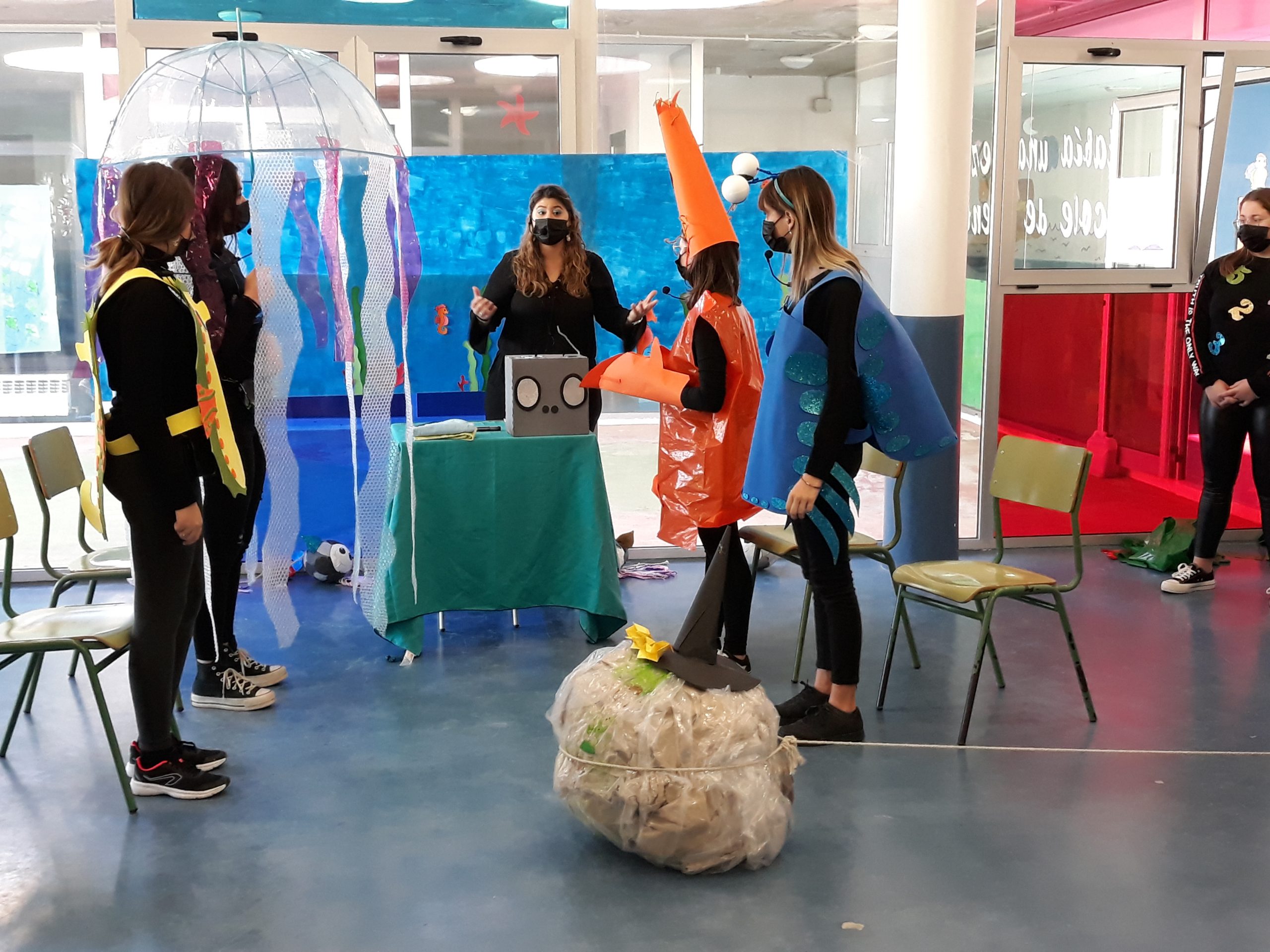 A través de la adaptación de la representación teatral “La Burbruja” y de sus personajes marinos: medusa, langostino, cangrejo y caballito de mar, los más pequeños de la localidad han conocido de manos del alumnado del ciclo formativo la situación del Mar Menor.