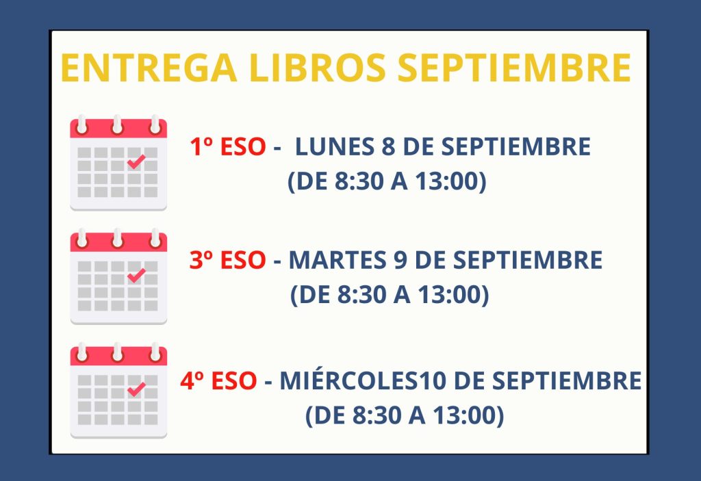 INSTRUCCIONES Y FECHAS PARA RECOGER LIBROS DE 1º,3º Y 4º ESO EN SEPTIEMBRE’25.